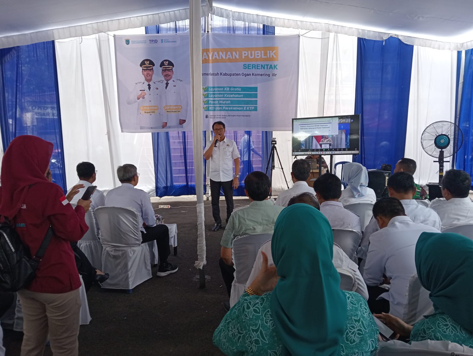 Ada empat layanan sekaligus yang dilakukan mulai dari pemeriksaan kesehatan, pelayanan KB gratis, pasar murah dan perekaman e-KTP.
